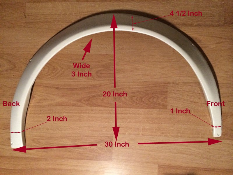 A SET OF (4) FENDER FLARES FOR SC300 OR ANY VEHICLE. NOTE: MUST USE RIVETS OR NUT RIVETS WHEN MOUNTING ON VEHICLE.